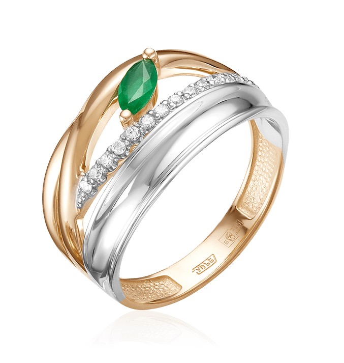 Кольцо из золота с камнем Бриллиант, Изумруд
