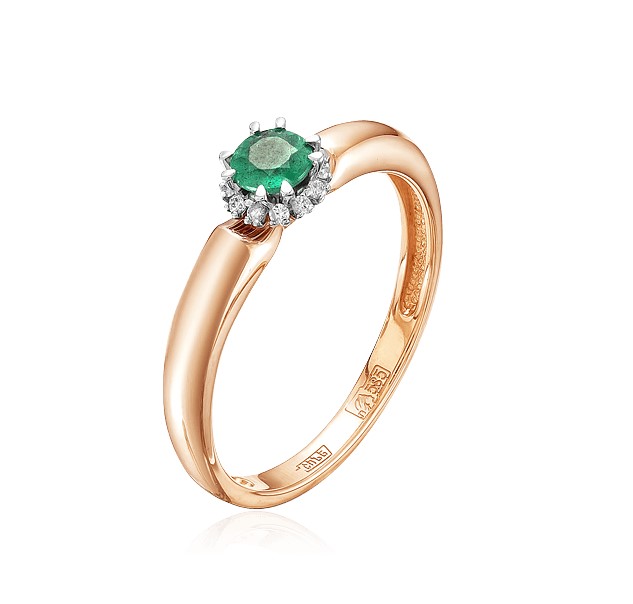 Кольцо из золота с камнем Бриллиант, Изумруд