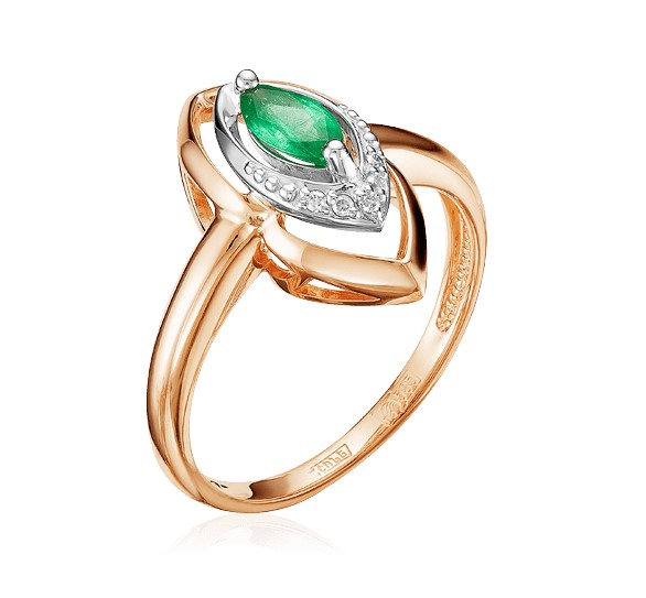 Кольцо из золота с камнем Бриллиант, Изумруд