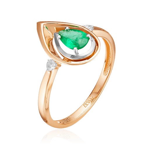 Кольцо из золота с камнем Бриллиант, Изумруд