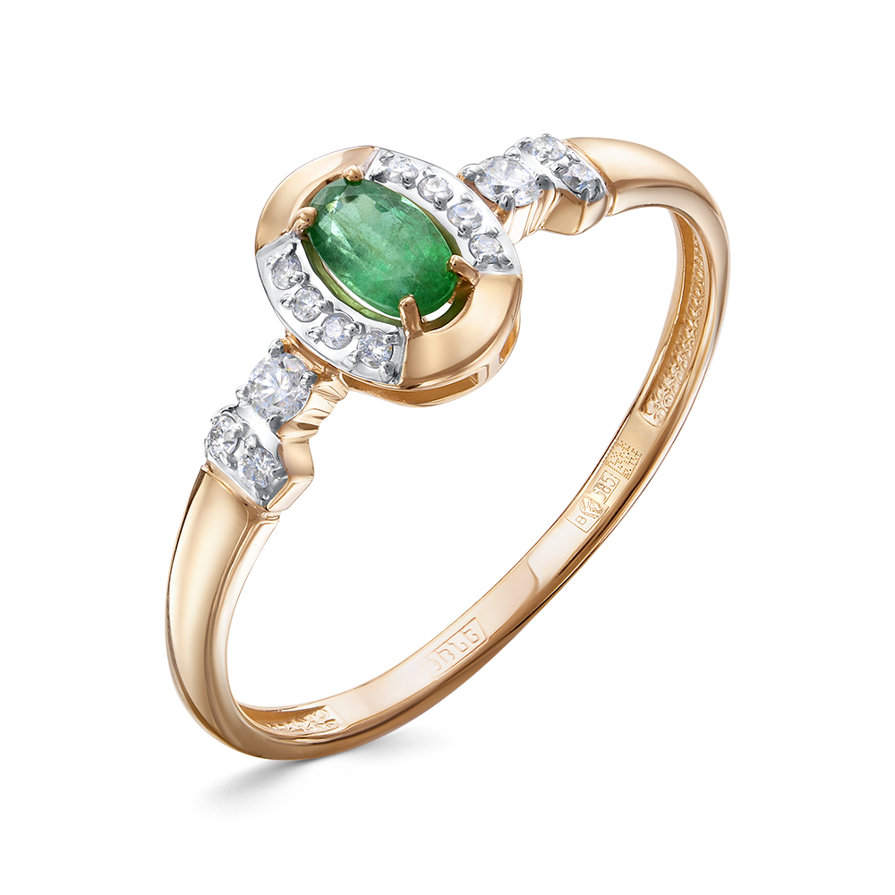 Кольцо из золота с камнем Бриллиант, Изумруд