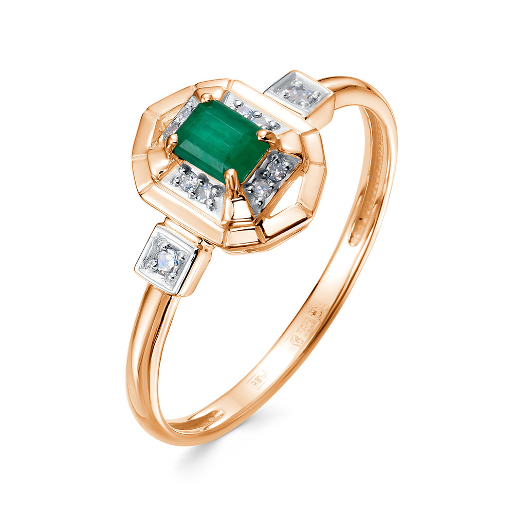 Кольцо из золота с камнем Бриллиант, Изумруд