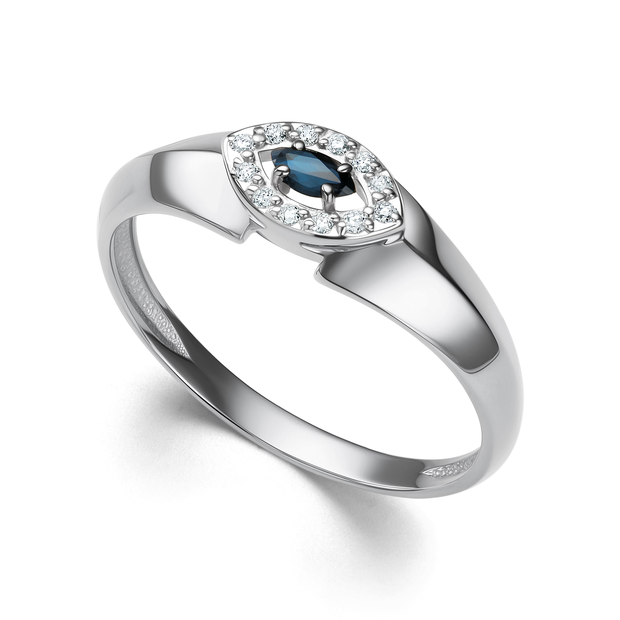 Кольцо, Белый | 12 Бр кр-57 0,059Ct 4/5А ,1 Сапфир Мар 0,105Ct 2/2 |