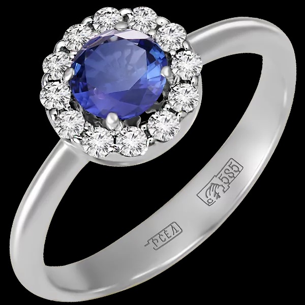 Кольцо, Белый | 12 Бр 0,190Ct ,1 Сапф 0,640Ct |