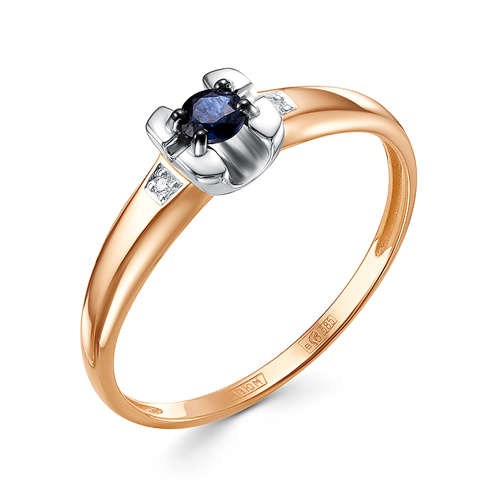 Кольцо, Комбинированное | 2 Бр кр-57 0,009Ct 3/6А ,1 Сапфир Кр 0,184Ct 2/2 |