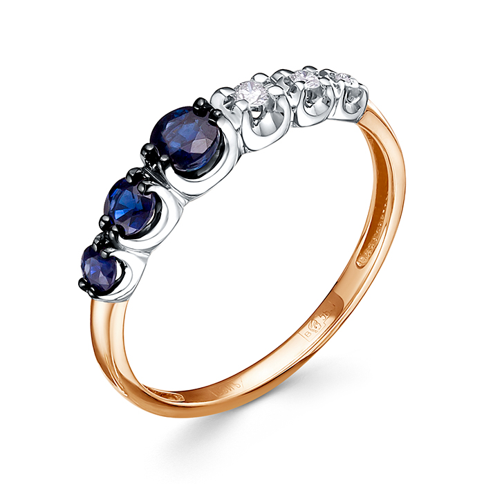 Кольцо, Комбинированное | 3 Бр кр-57 0,049Ct 3/6А ,2 Сапфир Кр 0,250Ct 2/2 ,1 Сапфир Кр 0,235Ct 2/3 |