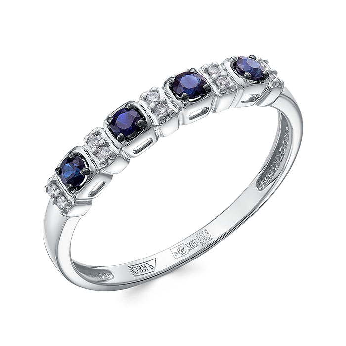 Кольцо, Белый | 10 Бр кр-57 0,035Ct 3/6А ,4 Сапфир Кр 0,186Ct 2/2 |