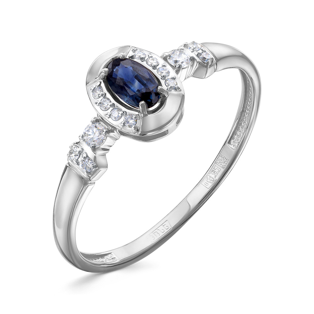 Кольцо, Белый | 14 Бр кр-57 0,141Ct 3/6А ,1 Сапфир Ов 0,290Ct 2/2 |