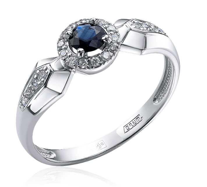 Кольцо, Белый | 22 Бр кр-57 0,116Ct 3/5А ,1 Сапфир Кр 0,220Ct 2/2 |