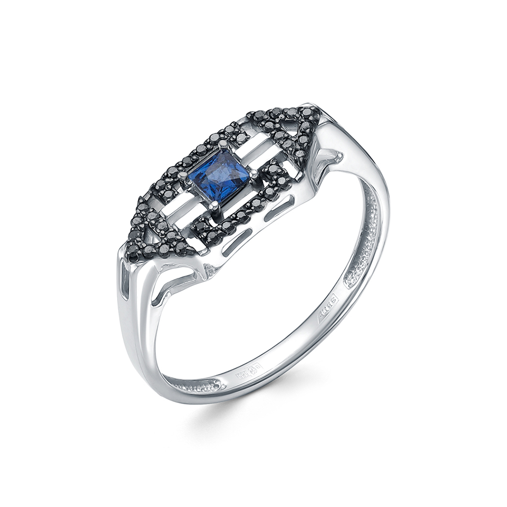 Кольцо, Белый | 36 Бр кр-57 0,111Ct 7/6А Черный ,1 Сапфир Кв 0,191Ct 2/2 |