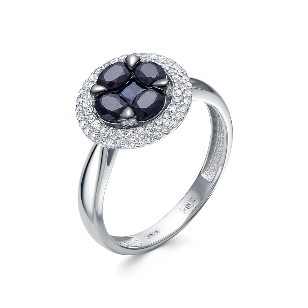 Кольцо, Белый | 64 Бр кр-17 0,135Ct 2/2А ,4 Сапфир Ов 0,863Ct 2/2 ,1 Сапфир Кв 0,153Ct 2/2 |