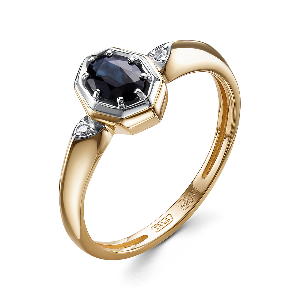 Кольцо, Комбинированное | 2 Бр кр-57 0,016Ct 3/5А ,1 Сапфир Ов 0,505Ct 2/2 |