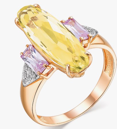 Кольцо из золота с камнем Фианит, Кварц