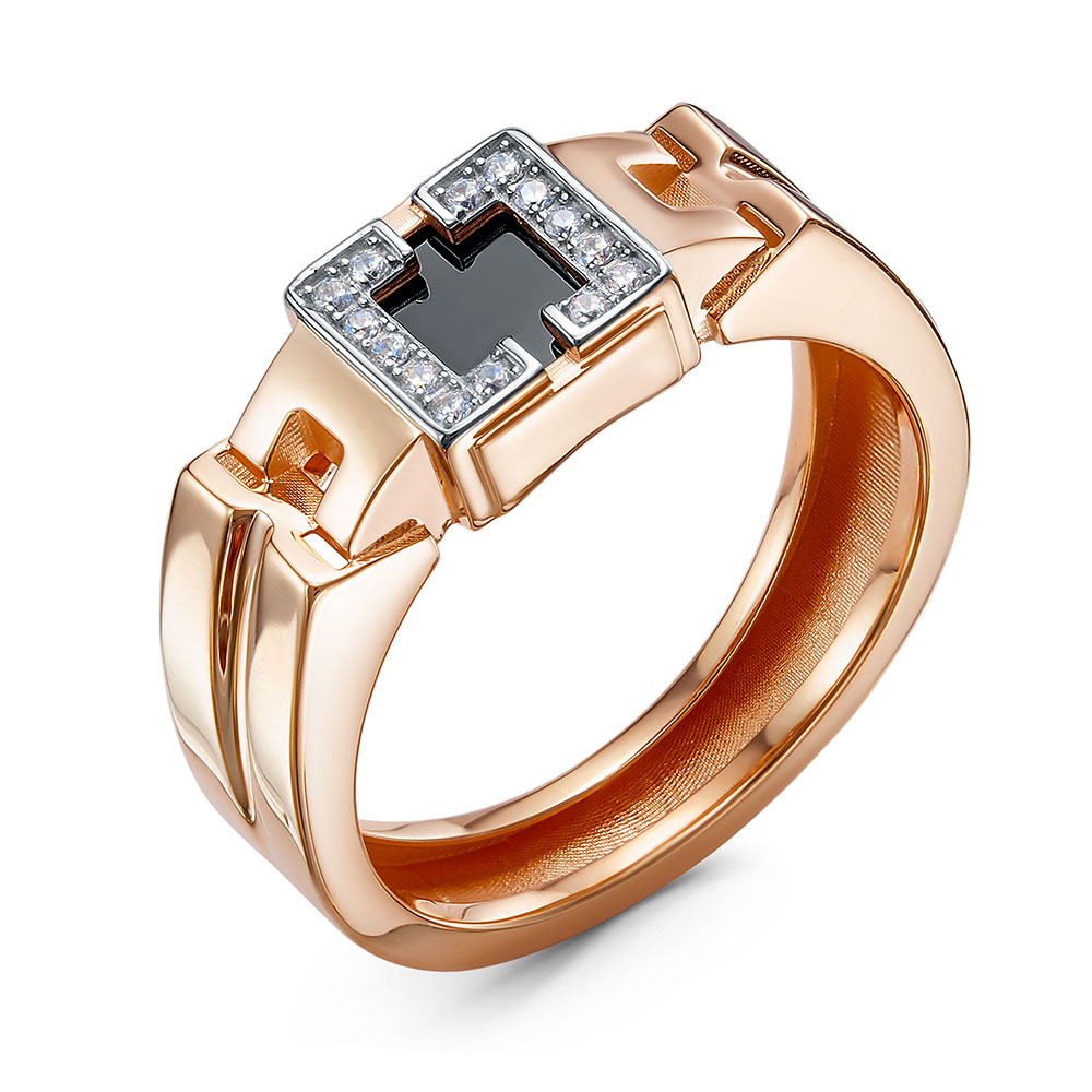 Кольцо из золота с камнем Фианит, Оникс