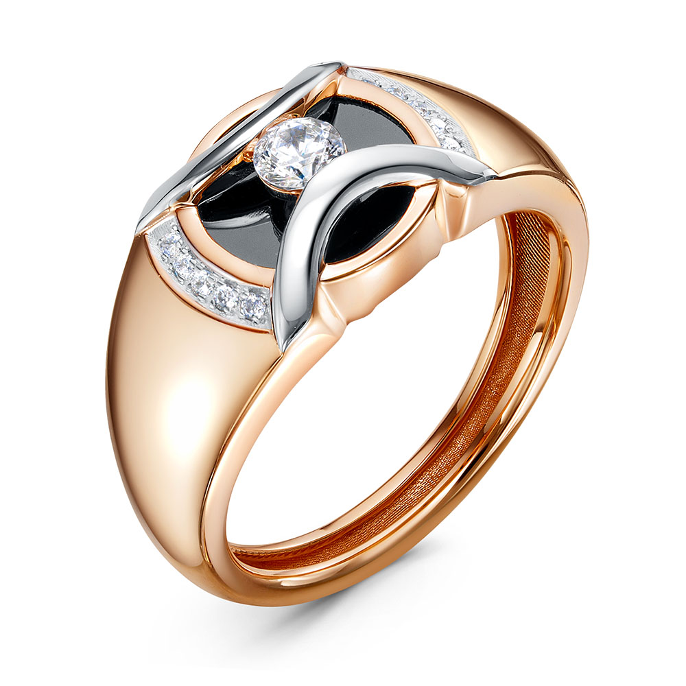 Кольцо из золота с камнем Фианит, Оникс,