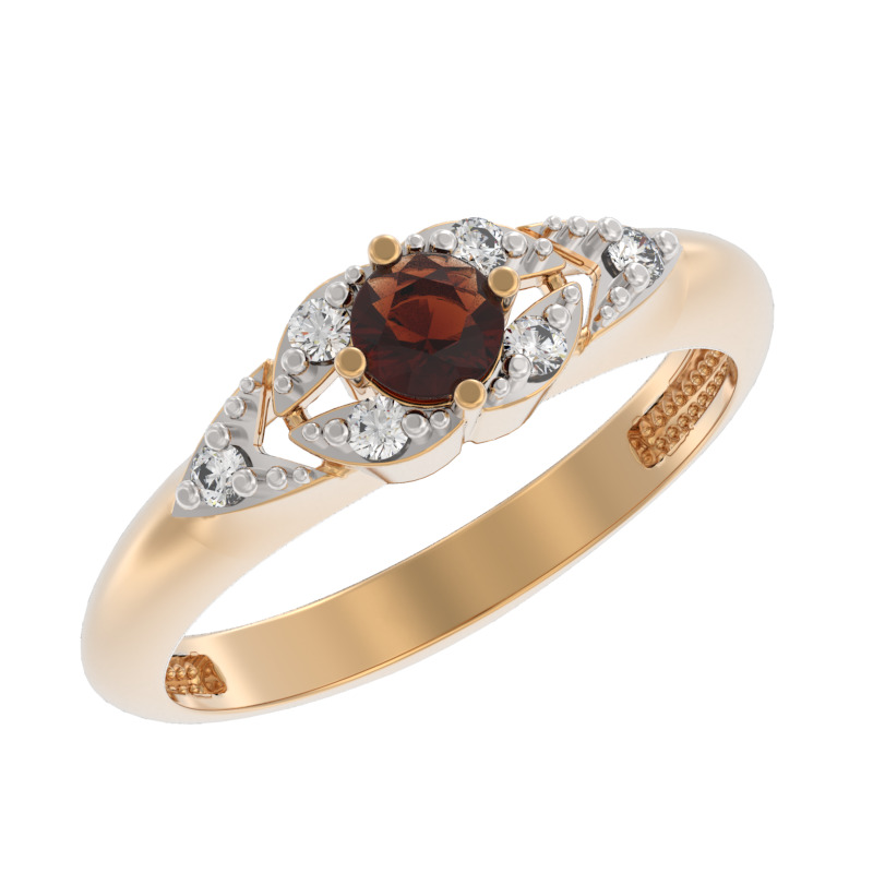 Кольцо из золота с камнем Гранат, Фианит