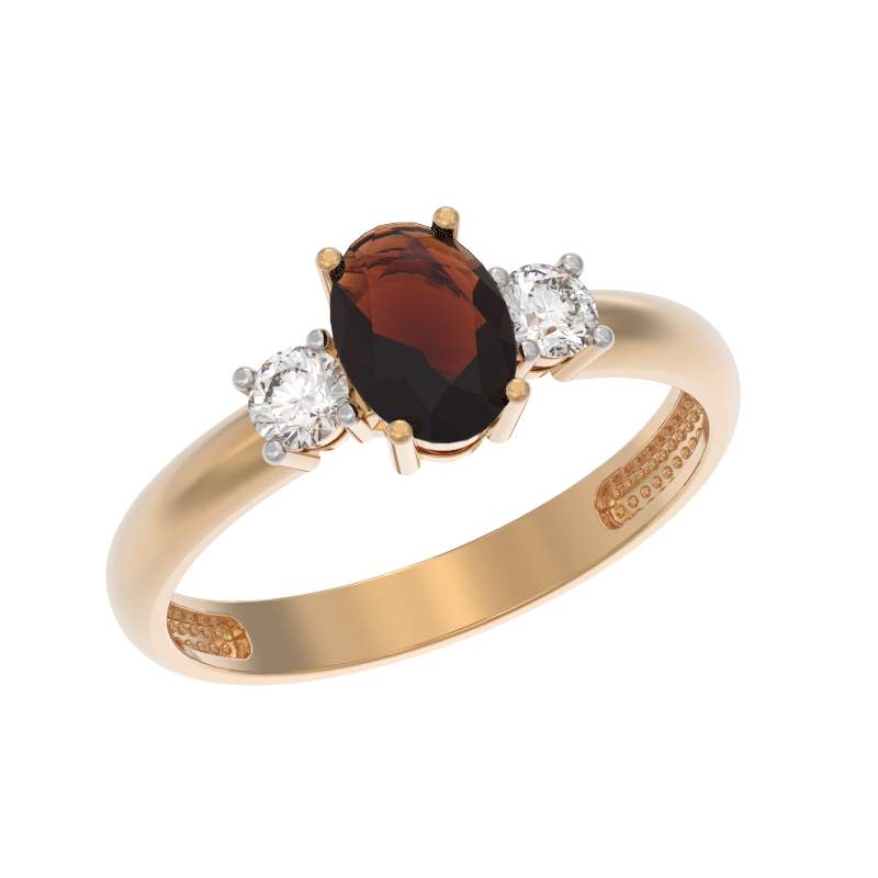 Кольцо из золота с камнем Гранат, Фианит