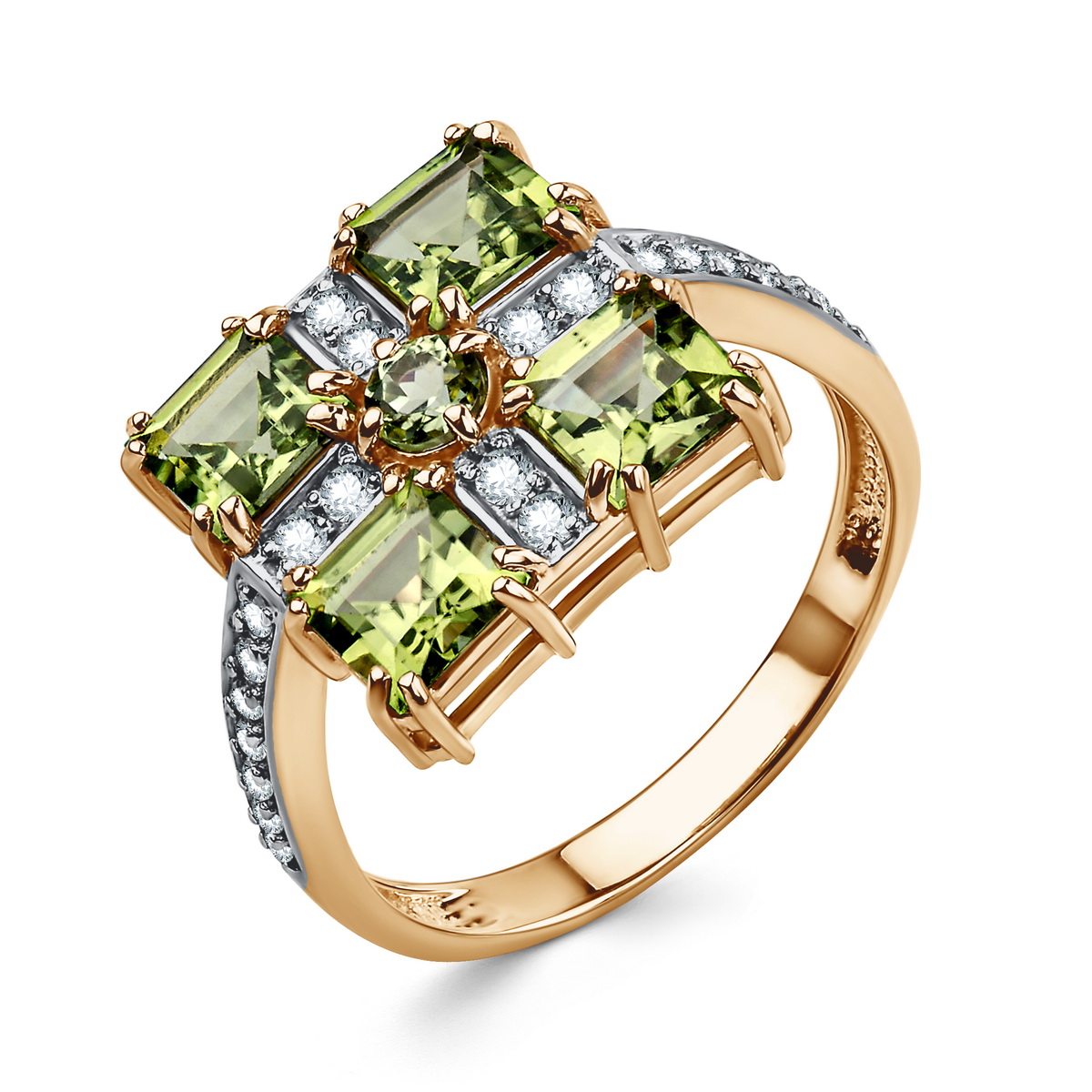 Кольцо | Хризолит ,Фианит |