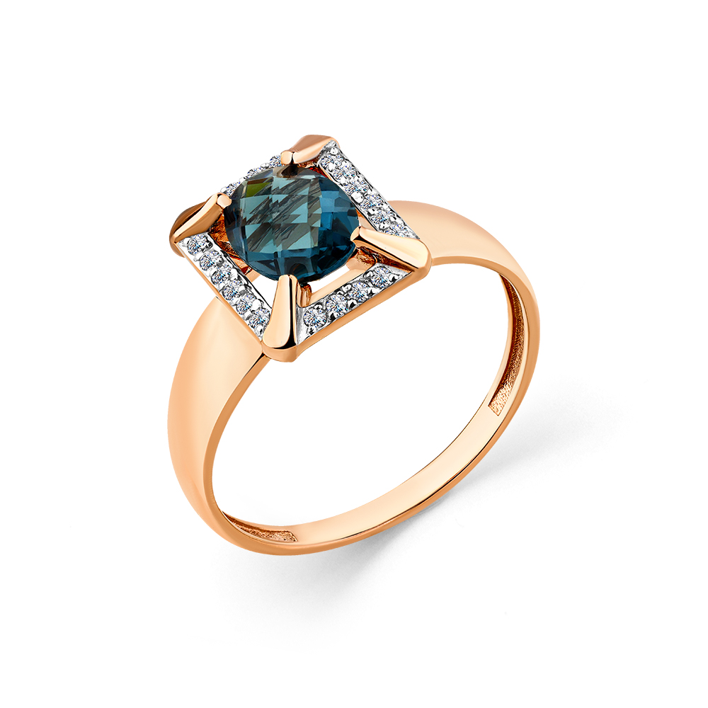 Кольцо из золота с камнем Лондон топаз, Фианит