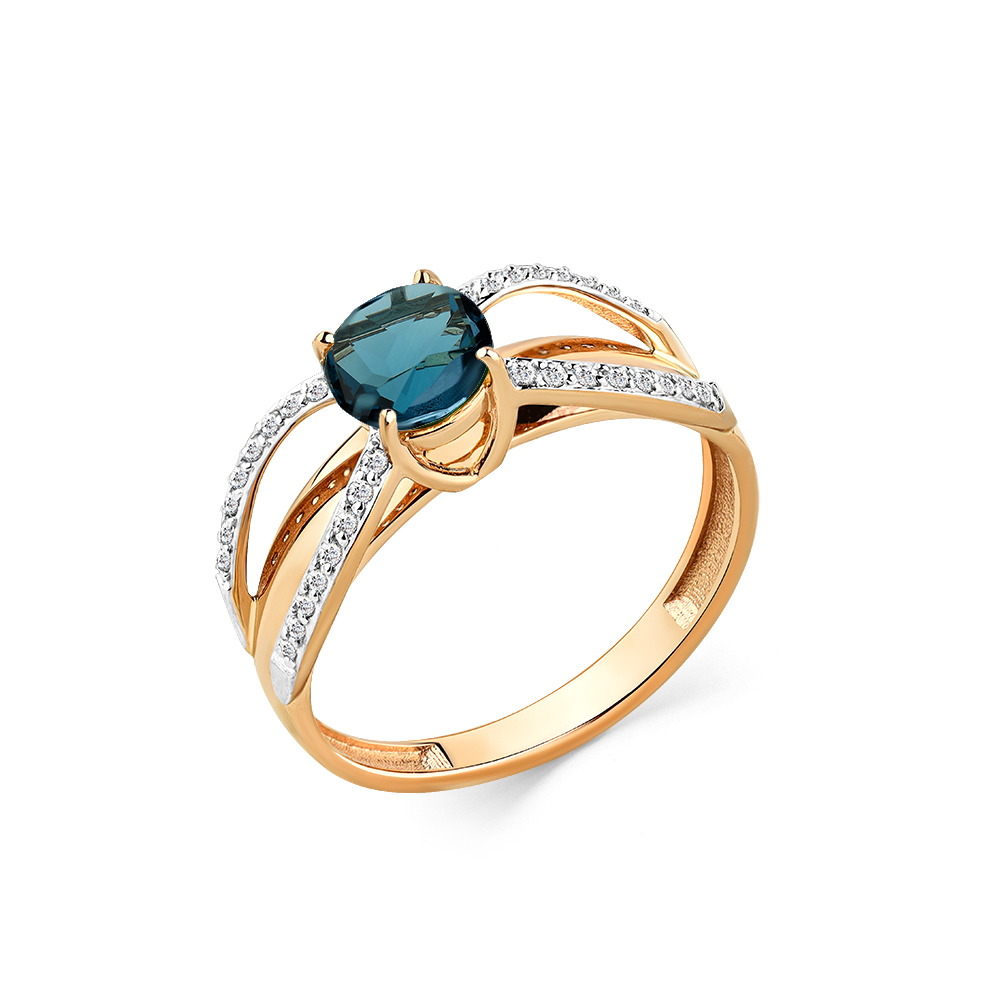 Кольцо из золота с камнем Лондон топаз, Фианит
