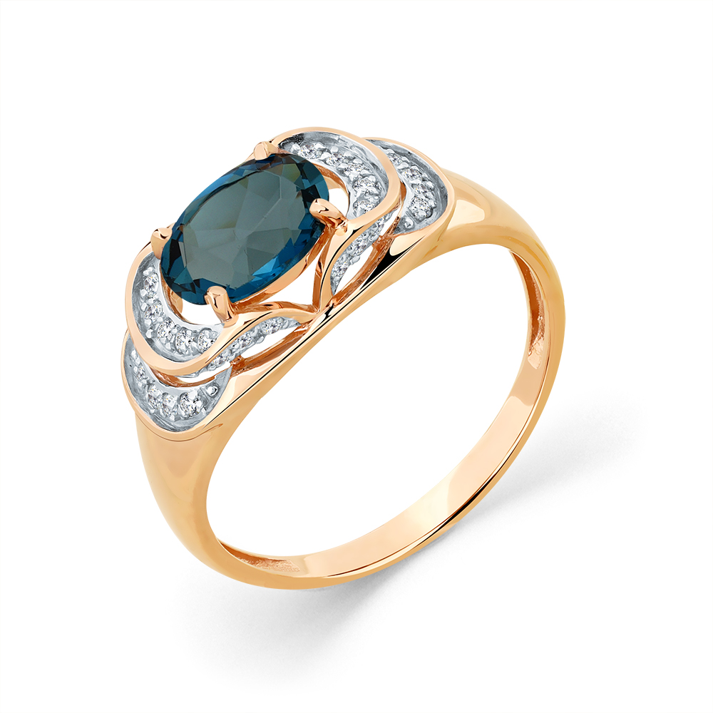 Кольцо из золота с камнем Лондон топаз, Фианит