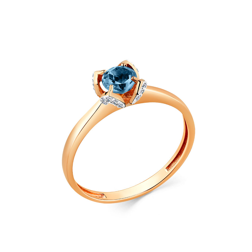 Кольцо из золота с камнем Лондон топаз, Фианит