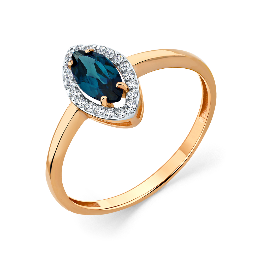 Кольцо из золота с камнем Лондон топаз, Фианит