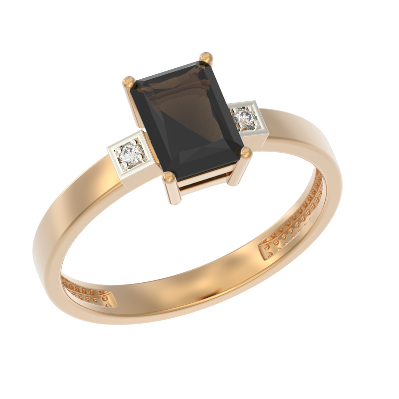 Кольцо из золота с камнем Раухтопаз, Фианит