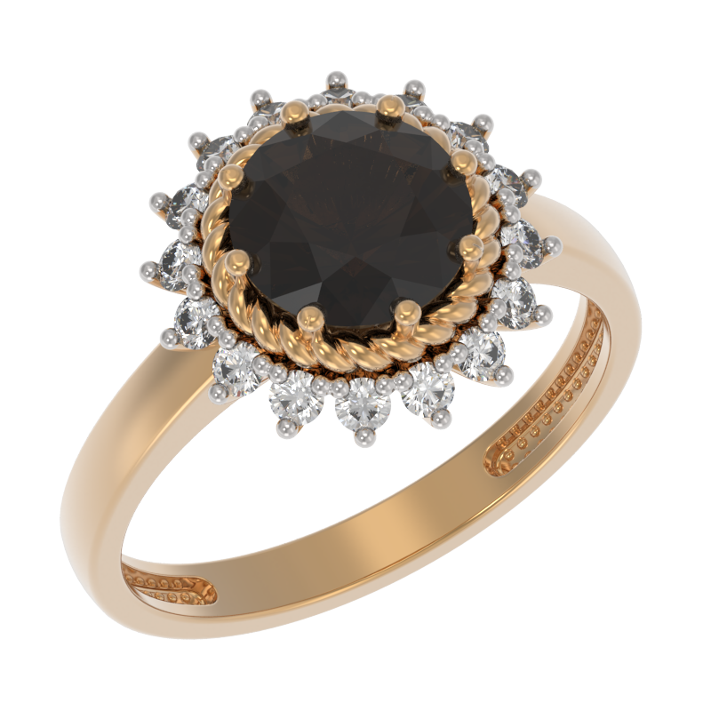 Кольцо из золота с камнем Раухтопаз, Фианит