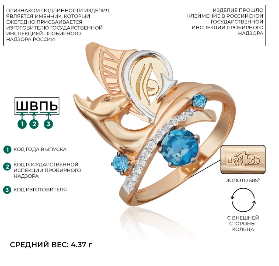 Кольцо, Комбинированное | Топаз |