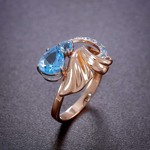 Кольцо «Стихия Воды» из красного и белого золота 585 пробы с натуральными топазами из коллекции PLATINA ELEMENTS от ювелирного бренда PLATINA. Дизайн украшения объёмный, сложный. Декоративная композиция метафорично воплощает многогранный характер Стихии Воды: его напористость, плавность, экспрессию и спокойствие. Кольцо вручную инкрустировано топазами оттенка Swiss Blue разной огранки. Кольцо станет выразительным акцентом в повседневном и романтическом стиле. А также эффектно дополнит вечерний или коктейльный образ.