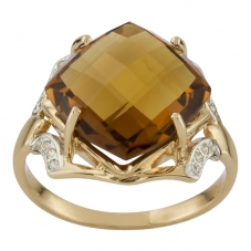 Кольцо из золота с камнем Цитрин, Куб цирконий