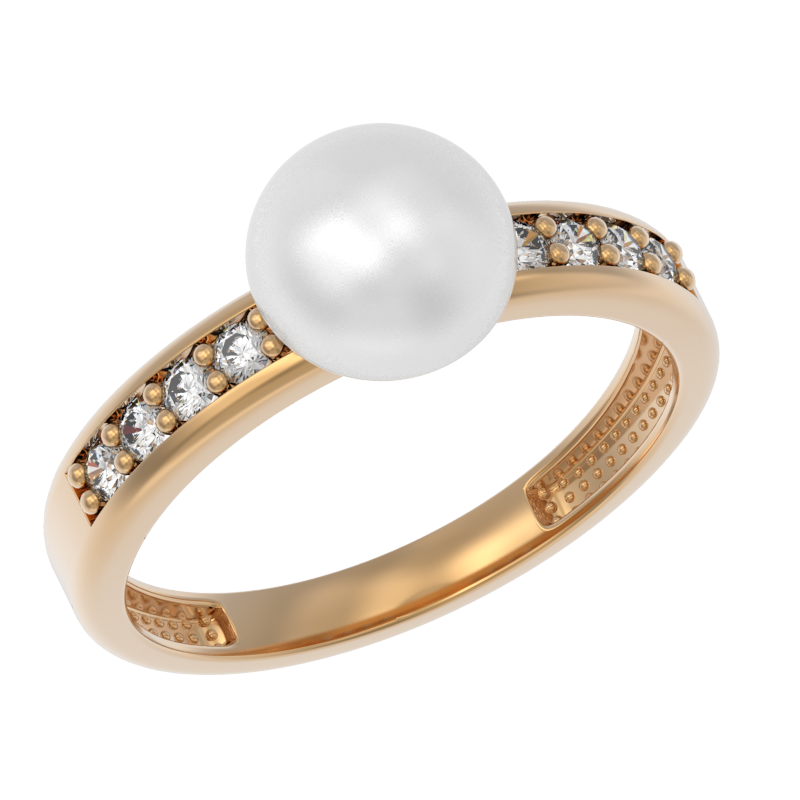 Кольцо из золота с камнем Жемчуг, Фианит