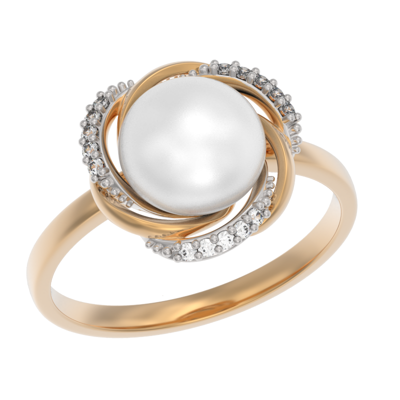 Кольцо, Комбинированное | Жемчуг ,Фианит |