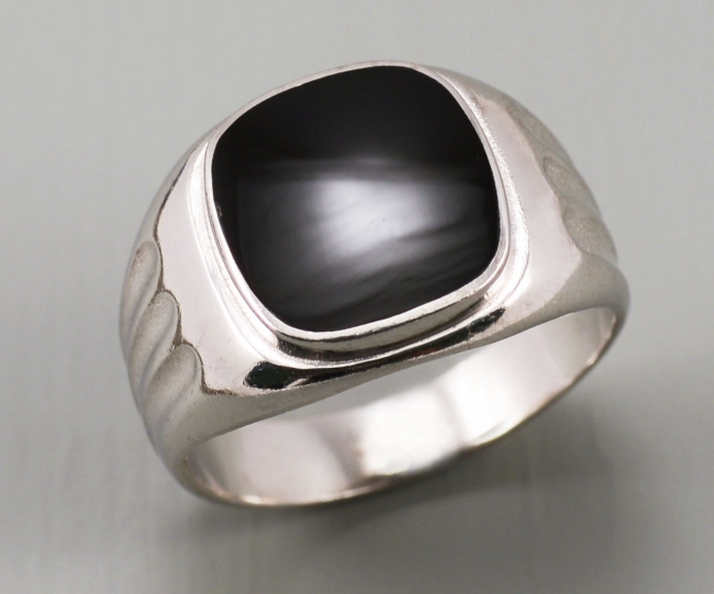 Печатка из серебра с камнем Обсидиан