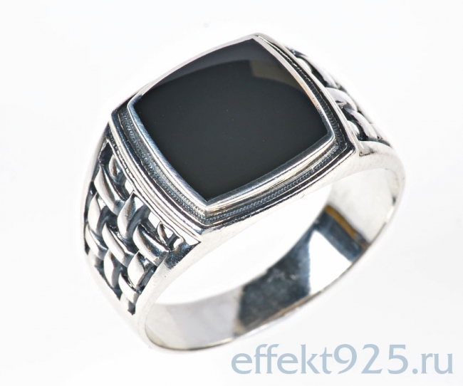 Печатка из серебра с камнем Обсидиан