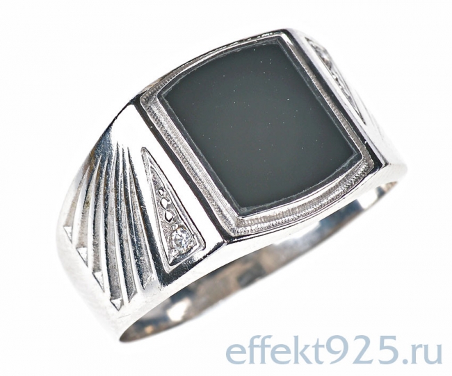Печатка из серебра с камнем Обсидиан