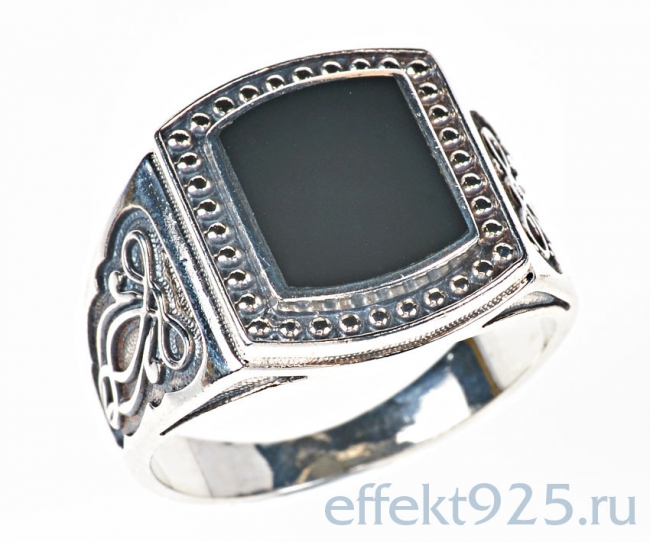 Печатка из серебра с камнем Обсидиан