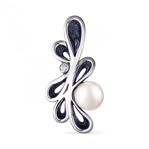 Подвеска из серебра с камнем Жемчуг, Фианит, вставками эмали