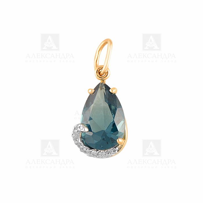 Подвеска из золота с камнем Фианит, Турмалин синт.