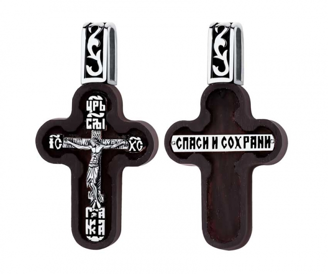 Крест из серебра с камнем вставками дерева