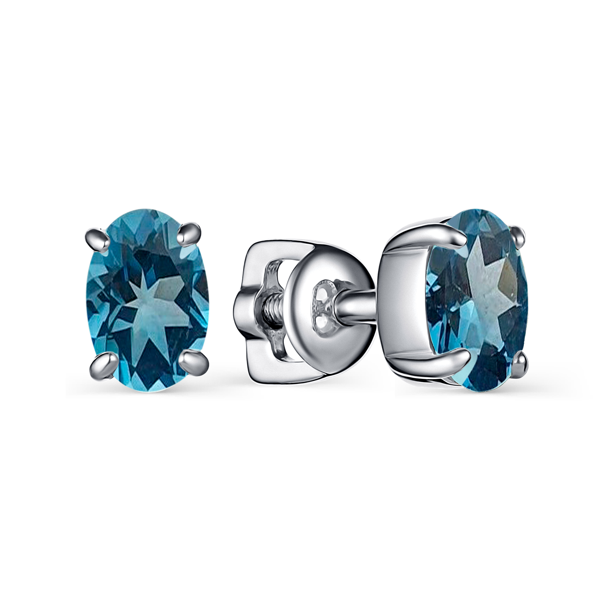 Пуссеты из серебра с камнем Лондон топаз