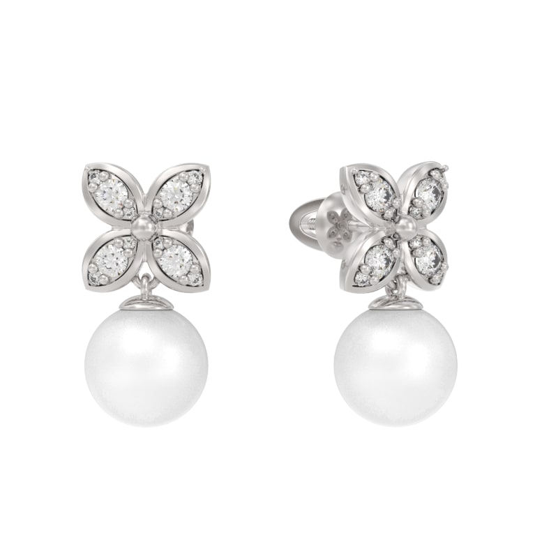 Пуссеты из серебра с камнем Жемчуг, Фианит