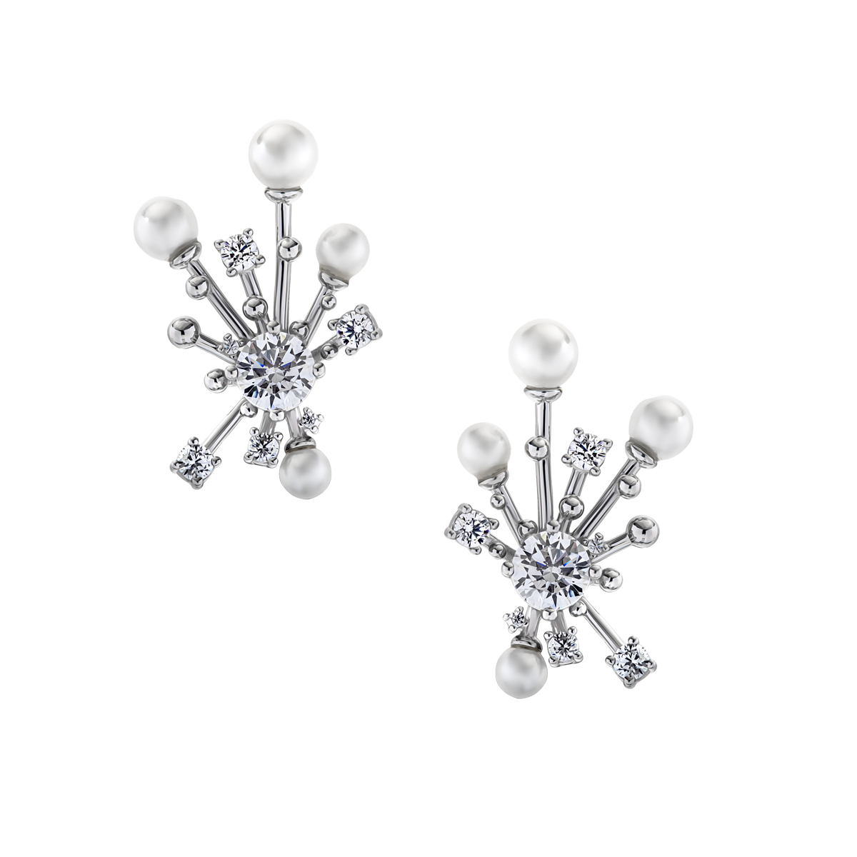Пуссеты из серебра с камнем Жемчуг, Циркон