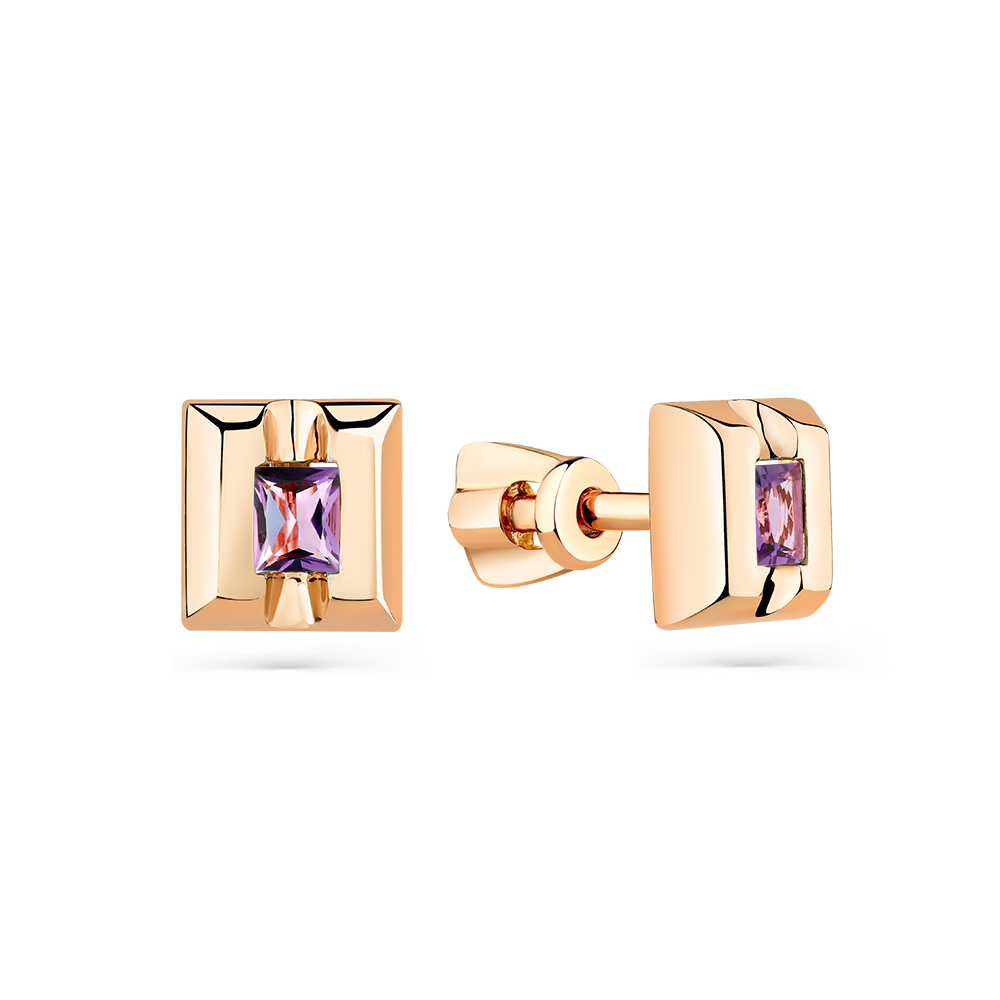 Пуссеты из золота с камнем аметист