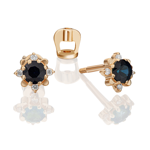 Пуссеты из золота с камнем Бриллиант, Сапфир