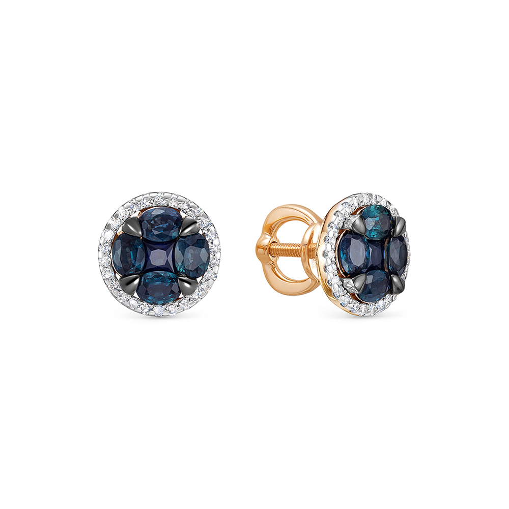 Пуссеты из золота с камнем Бриллиант, Сапфир