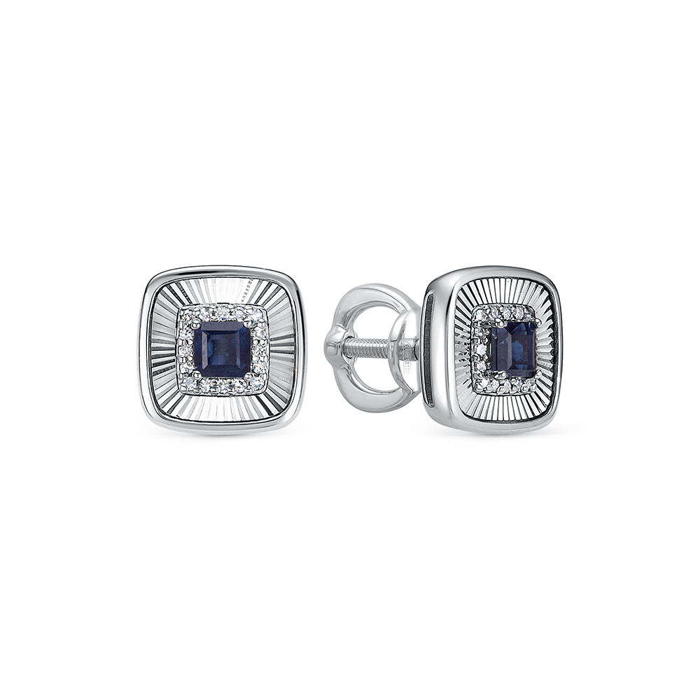 Пуссеты из золота с камнем Бриллиант, Сапфир