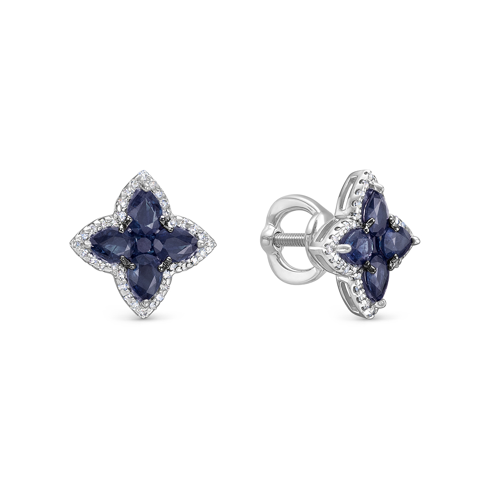 Пуссеты из золота с камнем Бриллиант, Сапфир