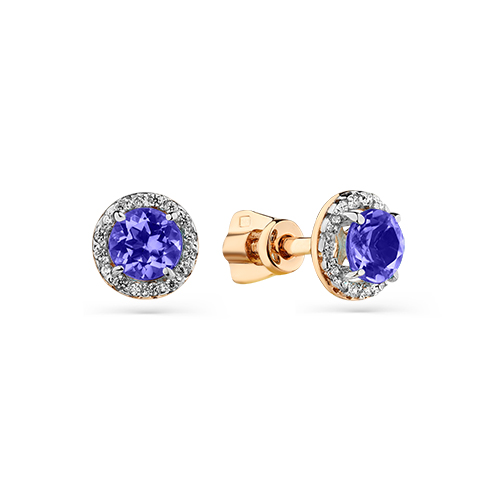Пуссеты из золота с камнем Фианит, Танзанит синт.